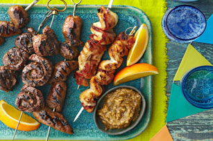 GRILL skewers 8 to 12 min. or until done, turning occasionally and removing from grill when done. (Beef skewers should be done first.)