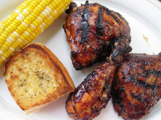 4 Alternately, the chicken can be baked in the oven. Preheat the oven to 375 degrees F. Place the chicken skin side up in a baking dish and bake for 25 minutes. Remove the baking dish from the oven and spoon the BBQ sauce all over the top of the chicken. Return the baking dish to the oven and bake for another 15 minutes.