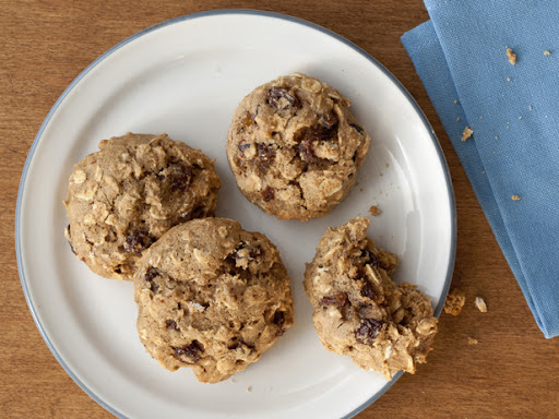 4. In the bowl of an electric mixer, beat the apple butter, butter and sugar until light and fluffy. Beat in the egg and vanilla until combined. With the mixer on low speed, gradually add the flour mixture until just combined; stir in the oats and raisins.