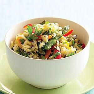 1. Cook orzo according to package directions. Drain, rinse, and transfer to a large serving bowl.
