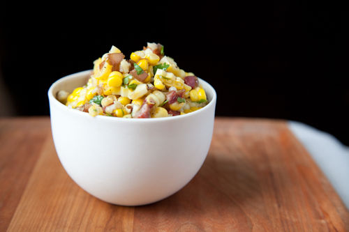 Cook the corn on the cob in a large pot of boiling water for about 10 minutes. Drain hot water and plunge corn into a bowl of ice water to stop cooking. Drain corn and set aside to cool completely.