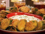 Working in batches, place the breaded zucchini slices in the hot oil and fry until golden brown, 3 to 4 minutes. Drain on a paper towel lined sheet tray and immediately season with salt and pepper. Serve alongside the zucchini.