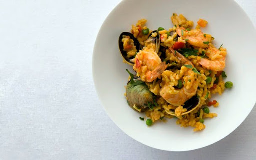 Stir in rice, broth, and saffron and bring to a rolling boil, uncovered. Reduce heat and simmer, covered and undisturbed, until most of liquid is absorbed, about 8 minutes. Stir in cockles and shrimp and cook, covered, until cockles open wide and shrimp are cooked through, 3 to 6 minutes. (Discard any cockles that remain unopened after 6 minutes.)