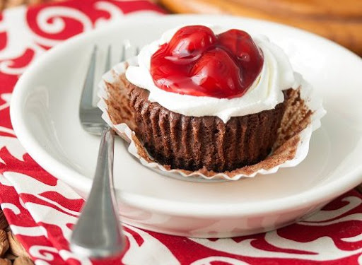 Place whipped cream in a pastry bag and pipe or spread the heavy cream into an even layer over cupcakes then pipe a rim around edge over that layer (or if spreading whipped topping, just create a small well into the center). Spoon about 2 Tbsp of cherry pie filling into the center of each. Store in refrigerator in an airtight container for up to 2 days.