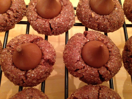 3. Bake until cookies are just set but still look moist, 4 minutes(DO NOT OVERBAKE). Immediately after taking out of oven, place Hershey kiss in each center of the cookies. Cool on wire rack
