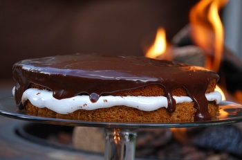 To assemble: Place one layer of cake on a cake stand or serving platter. Spread about 1/2 cup of the chocolate frosting onto the cake, then spread the marshmallow creme into an even layer.