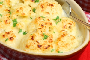 Pasta can be loaded with calories, and rarely leaves you satisfied after just one serving. This mac and cheese recipe by TV host, author and "foodologist" Hungry Girl Lisa Lillien replaces macaroni with cauliflower. This nutritious and satiating substitution soaks up the cheese sauce for a delicious flavor. Eat more for less calories!
