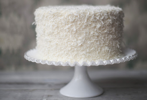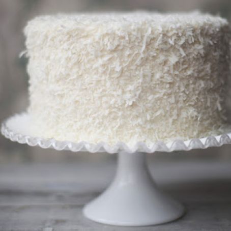 •11. Place 1 cake layer, bottom-side up, on a cake plate. Use an offset spatula to spread half of the filling on top. Add the second cake layer, bottom-side down, and spread the top with the remaining filling. Top with the third layer, bottom-side up. Use a large offset spatula to spread the frosting over the top and sides of the cake. Use the palm of your hand to gently press the coconut onto the sides and top of the cake.