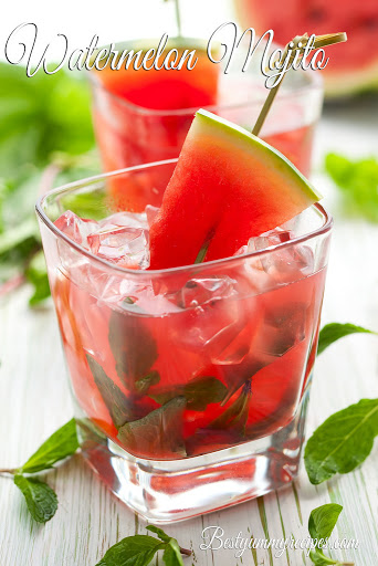 Watermelon adds a touch of sweetness and light pink color to this summery, refreshing cocktail.