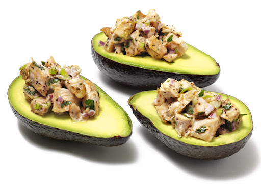4) When the chicken is cool enough to handle, cut it into a 1/2-inch dice, add it to the mayonnaise mixture and mix well. If not serving immediately, transfer to the refrigerator to chill. Serve in avocado halves, if desired.