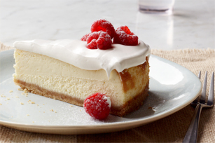 Refrigerate 4 hours. Remove rim of pan before serving cheesecake.
