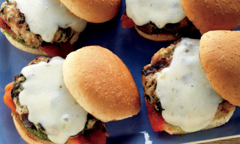 Mix chicken and next 8 ingredients (chicken through black pepper). Form into 12 patties about ½-inch thick. Refrigerate until ready to grill.