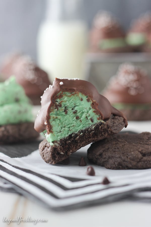 3. Add a pinch of salt, mint and heavy whipping cream last and increase mixer speed to high to whip frosting until smooth and creamy. Dye frosting with green food coloring is desired. Mix well.