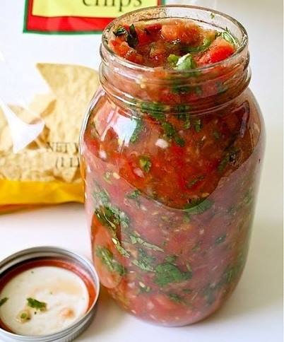 Chop 5-6 Roma tomatoes,1 small onion and 1/2 cup fresh Cilantro. Mince 2 seeded Serrano or Jalapeño peppers and 1 clove of garlic. Add 2 tbsp. freshly squeezed lime juice and salt and pepper to taste. Mix everything together and let sit overnight for flavors to meld.
