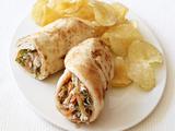 Spoon one-quarter of the chicken filling down the middle of each piece of bread. Drizzle with some of the yogurt sauce and roll up. Serve with chips.