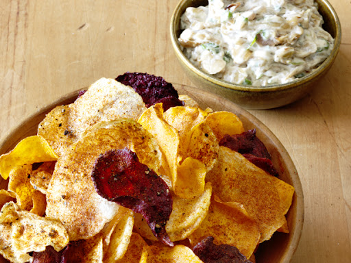 Mix paprika, cayenne and black pepper in a bowl. Spread potato chips on 2 baking sheets. Bake in a 350 degrees F oven until oily-looking, about 5 minutes. Toss with the spices and bake 2 more minutes. Let cool.