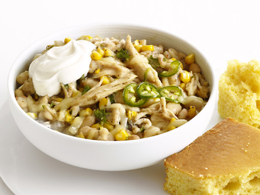 2) Using a potato masher, mash the chili until about half of the beans are broken up. Stir in the corn, cilantro and 1/2 cup cheese. Divide the chili among bowls and top with the remaining 1/2 cup cheese and the sliced jalapeno. Serve with sour cream and cornbread, if desired.