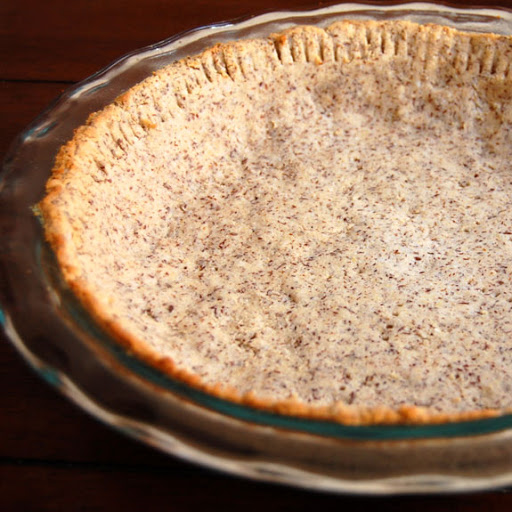 4. Preheat the oven to 325 degrees F. Grease a pie dish with coconut oil spray. Press the pie crust into the dish with your hands, pushing out from the middle evenly. Using a fork, poke numerous holes in the dough.
