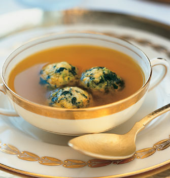 Saffron Chicken Broth w/Spinach Matzoh Balls