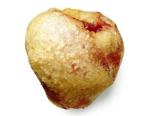 - Hull strawberries. Whisk 1 cup flour, 1 teaspoon baking powder, 1/2 teaspoon salt and 1 cup cold club soda. Mix with 1/2 teaspoon ground cinnamon and 1 tablespoon sugar. Fry about 1 minute.
