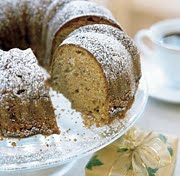 Bake until the top of the cake is firm (a skewer inserted in the center should come out clean), about 40 to 45 min. Cool for 15 min. in the pan on a wire rack. Invert the cake onto a serving platter, dust with confectioners' sugar, and serve slightly warm or at room temperature.