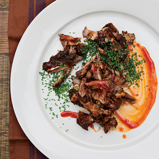 Smoke the lamb fat side up for 6 to 7 hours, basting with some of the Sorghum Barbecue Sauce during the last 30 minutes. The lamb is done when an instant-read thermometer inserted in the center registers 185° and the meat is very tender; monitor the temperature throughout the cooking process and adjust the air valves as needed.