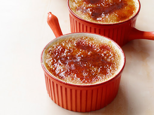 Lightly sprinkle the custard with turbinado sugar. Heat the sugar with a butane torch until caramelized. To get a thicker caramelized sugar crust, repeat, using just a light sprinkling of sugar each time. Let cool.