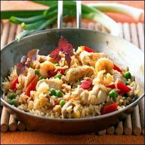 8. Combine rice, vegetables, sesame seeds and eggs. Add soy sauce. Stir. Salt and pepper to taste.
