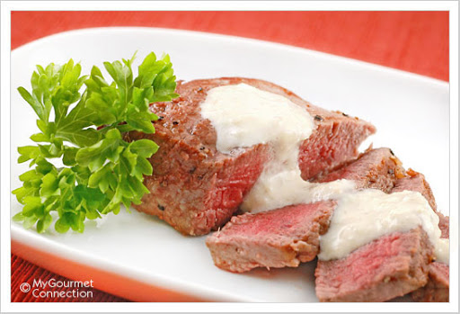 Slice steaks and serve with sauce.
