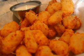 Take the Cheese Curds from the Flour Mix and fry in pre-heated oil