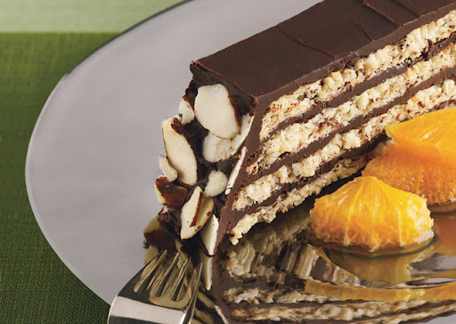 Almond Macaroon Torte w/Chocolate Frosting & Orange Compote
