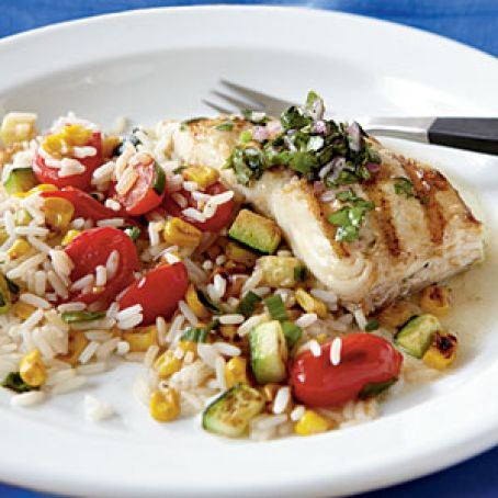 Wine note: The green herbs and tangy citrus in the chimichurri here need a bright, herbal white: sauvignon blanc. Discover the Clayhouse label out of California's powerhouse Central Coast. Their 2008 Sauv Blanc ($15) is racy with lime, green apple, crisp stone fruit, and green herbs, with enough body to stand up to the meaty fish. —Sara Schneider
