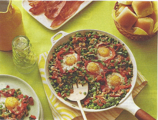 back of a ladle, make 8 indentations in pea mixture. Break eggs