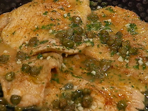• 4 veal scallops, about 3/4 pound, pounded to a thickness of 1/8-inch