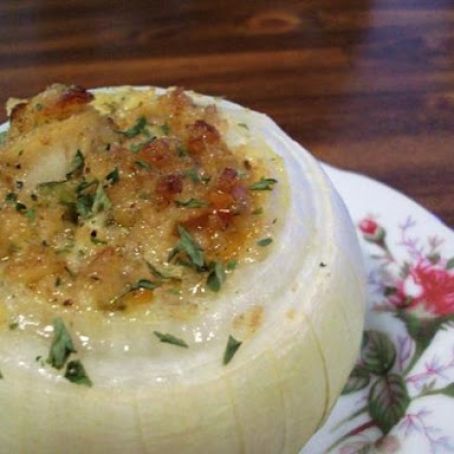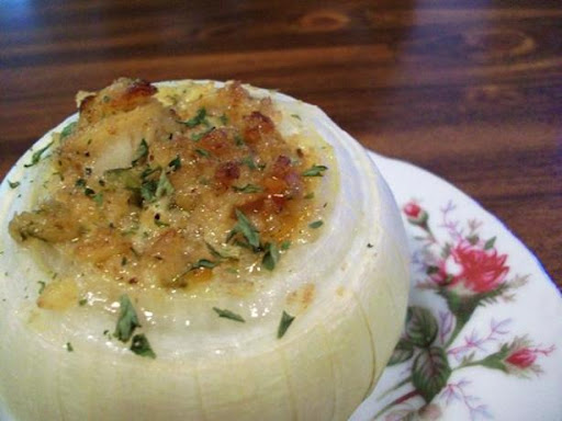 Bake in 350°F for 50 to 60 minutes, basting onion with broth aver 15 min.