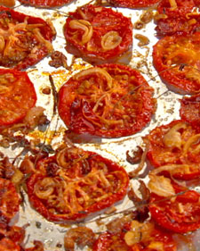 Roasting the tomatoes for a long time in a low-temperature oven concentrates the flavors. Try these roasted tomatoes as a topping for a pizza-style focaccia bread. May 2011