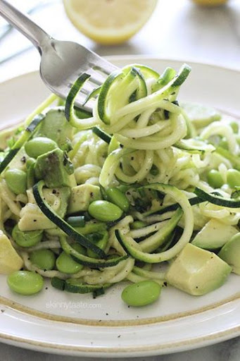 - Spiralized Raw Zucchini Salad with Avocado and Edamame
