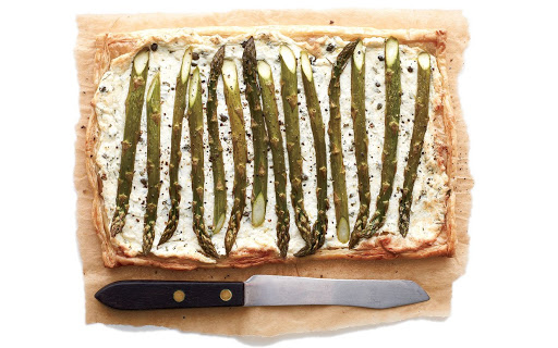 Spread ricotta mixture over crust. Sprinkle with more Asiago. Line asparagus across filling. Bake until pastry is golden-brown and asparagus is tender, about 30 minutes.