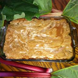 Spread rhubarb into the bottom of a 9x13-inch baking dish.