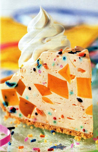 CUT lemon gelatin into 1/2-inch cubes or decorative shapes. Add gelatin cubes,whipped topping and sprinkles to orange gelatin; stir gently until well blended. Refrigerate until mixture will mound. Pour into crust. Refrigerate at least 4 hours or until firm.