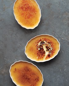 Make the topping: Before serving, place dishes in freezer 20 minutes. Mix sugar and cinnamon; sprinkle a thin layer on custards. Use a kitchen torch to caramelize sugar, or put custards under broiler, 1 to 2 minutes. Repeat with another layer of cinnamon sugar.