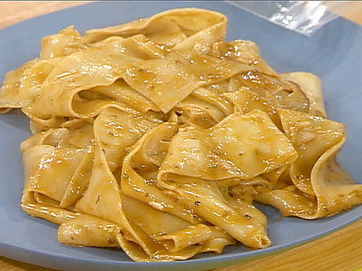 - 3/4-pound pappardelle pasta (wide ribbons, substitute fettuccine if unavailable)