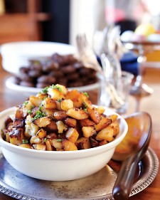 Roast potatoes until beginning to turn golden, 30 to 35 minutes. Distribute onion evenly over potatoes. Reduce heat to 400 degrees, and roast until potatoes are golden and onions are tender, 25 to 30 minutes. Garnish with rosemary.