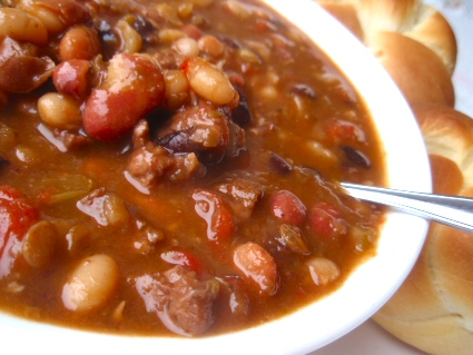 2. Bring to a boil over medium heat and then simmer gently over low heat, covered, until beans are all tender (2 1/2 hours or so).