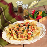 3) Spoon chicken-tomato mixture over chips; top with cheese. Bake 5 minutes or until cheese melts. Serve immediately.