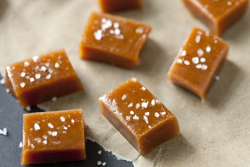 Pour caramel into loaf pan. Cool 8 to 10 minutes. Sprinkle coarse sea salt evenly over top. Cool completely in pan on cooling rack.