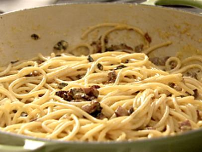 Drop the spaghetti into the boiling salted water and cook according to package instructions, about 6 to 9 minutes or until al dente, or tender but still firm to the bite.