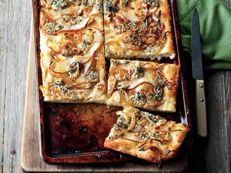 Focaccia with Caramelized Onions, Pear and Blue Cheese