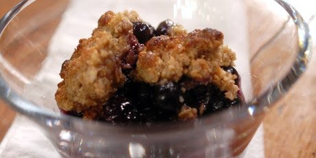 3. Toss the fruit with the sugar and flour and tumble into the baking dish Sprinkle the crumble mixture evenly over the fruit and press to pack it down a bit. Bake until the fruit is soft and the top crisp, about 40 minutes. Let sit about a quarter hour before serving with sweetened, vanilla-flavoured whipped cream.