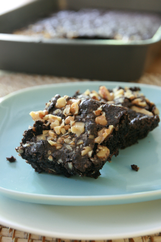 1. Combine first 7 ingredients in a large mixing bowl, stirring well. Place batter in a lightly greased 13-x 9-inch baking pan. Bake at 325F for 20 to 25 minutes. Top with nuts, if desired.